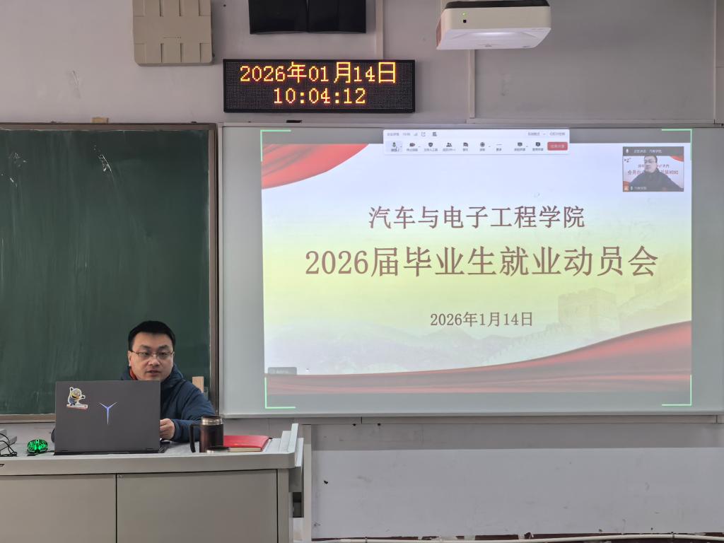 为引导2026届毕业生科学研判就业形势、明确职业方向、提升就业竞争力,提前布局2026年学院就业工作,2026年1月14日,汽车与电子工程学院线上线下同步召开2026届毕业生就业动员会。